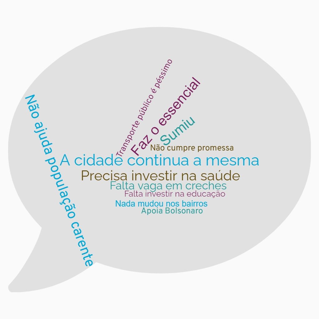 A percepção deste grupo de eleitores pode ser compreendida na frase; ‘a cidade continua a mesma’. Para eles, as melhorias, a manutenção e os investimentos não são perceptíveis. Grande parte desta população reside nos bairros periféricos da cidade, onde a carência de serviços e atendimento se sobrepõe as entregas que o atual prefeito vem realizando.